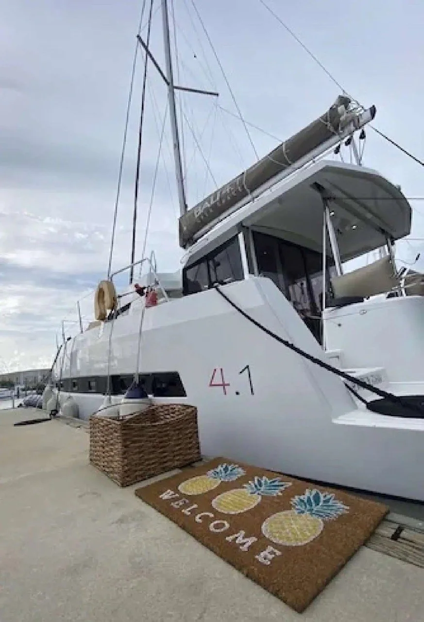 This beautiful sailing catamaran is docked in the Perry Marina. This first class marina is conveniently located on Stock Island, less than 5 miles from old town Key West and Duval Street. The marina is private and secure with many resort style amenities, such as access to free parking, pools, restaurants, bars, ship store, coffee shop, and laundry.