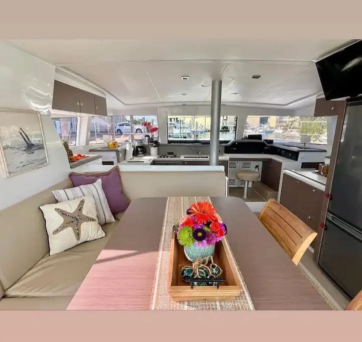 Sailing catamaran Purpus has an ideal layout and is meticulously maintained. Purpus is available for "family style charters" and retreats for friends. This comfortable charter catamaran is in great condition and has been well maintained inside and out.